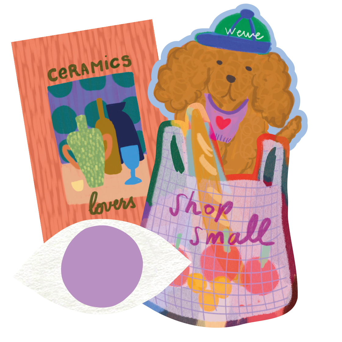 Klin d'oeil: Vi lancerede en åben opfordring og valgte 35 kunstnere fra næsten 400 ansøgninger. Hver kunstner blev inviteret til at skabe et sæt på fire klistermærker, der blev solgt som en begrænset udgave eksklusivt til pop-up'en.